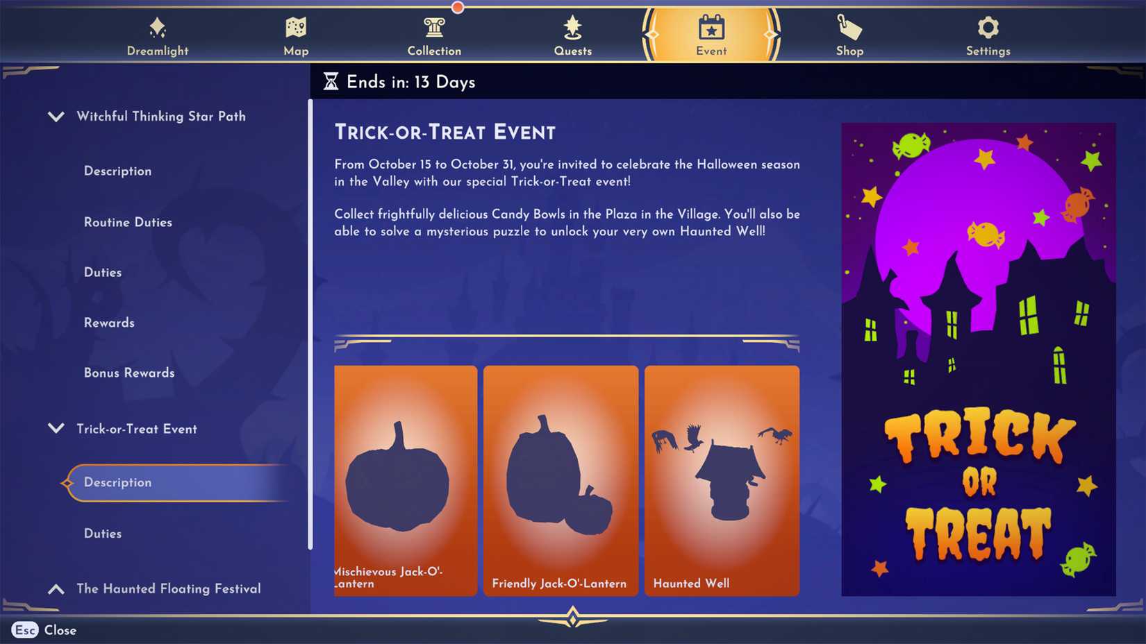 To clear up the Trick or Deal with puzzle in DDV, you want to discover the Haunted Effectively within the Forest of Valor and provides it 15 Inexperienced Sweet, 10 Purple Sweet, and 5 Purple Sweet respectively. Begin within the Plaza and seek for a crimson chest to unlock a reminiscence with the Trick or Deal with puzzle. There can be a math equation and a small inexperienced tree to the left, which is the clue that may lead Dreamers to the Forest of Valor.